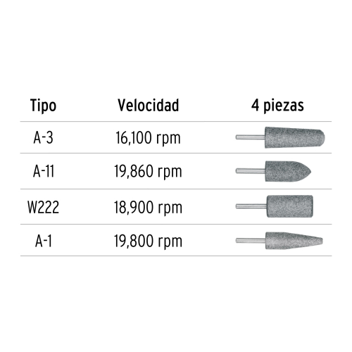 JUEGO DE 4 PIEDRAS MONTADAS ZANCO 1/4., ACERO INOXIDABLE