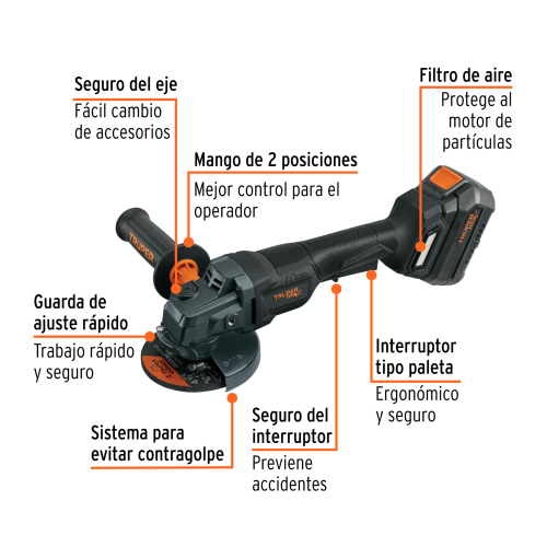 ESMERILADORA 4-1/2., 20V, INT. PALETA, 1 BATERIA 4AH, MAX