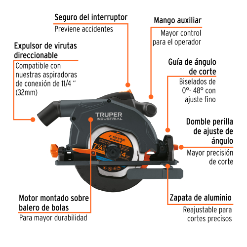 SIERRA CIRCULAR 7-1/4. 1800W, TRUPER INDUSTRIAL