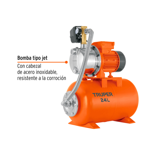 EQUIPO HIDRONEUMATICO 24L, BOMBA JET INOX. 3/4 HP, TRUPER