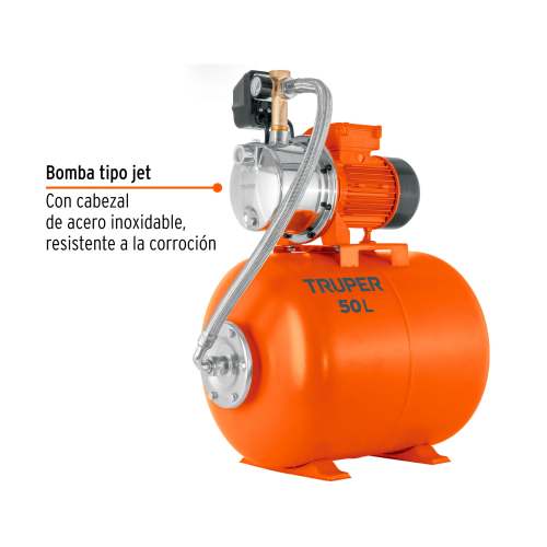 EQUIPO HIDRONEUMATICO 50L, BOMBA JET INOX. 3/4 HP, TRUPER