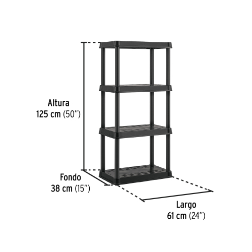 ESTANTE PLASTICO 4 REPISAS CAP. 45 KG 125 X 38 X 61, PRETUL