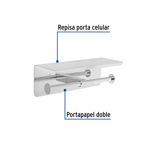 PORTARROLLO DOBLE EN CROMO CON SOPORTE PARA CELULAR, FOSET
