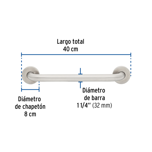 BARRA RECTA DE SEGURIDAD, ACERO INOX, 1-1/4. X 40CM, FOSET