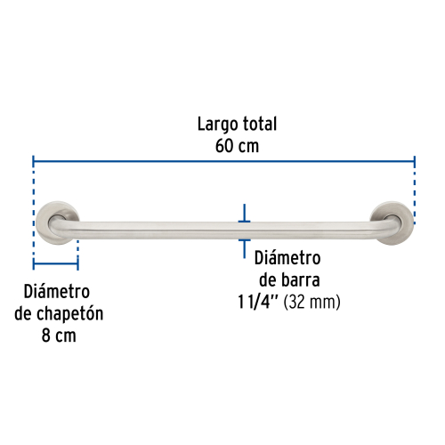 BARRA RECTA DE SEGURIDAD, ACERO INOX, 1-1/4. X 60CM, FOSET